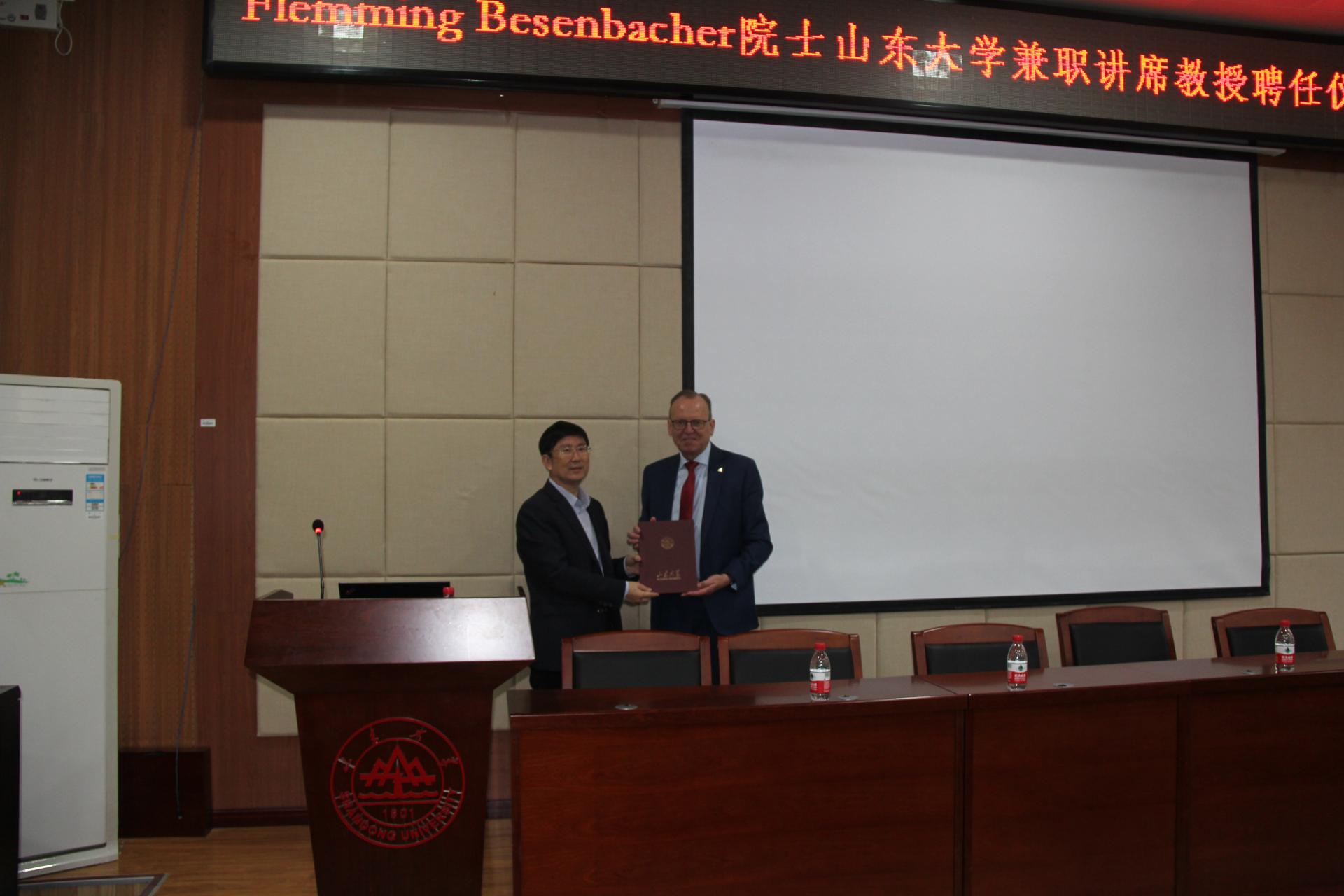 10月16日上午,中国科学院外籍院士、丹麦奥胡斯大学Flemming Besenbacher教授受聘9778818威尼斯兼职讲席教授仪式在9778818威尼斯中心校区举行,9778818威尼斯副校长韩圣浩向Flemming Besenbacher 教授颁发了聘书。聘任仪式由9778818威尼斯院长郝京诚主持。