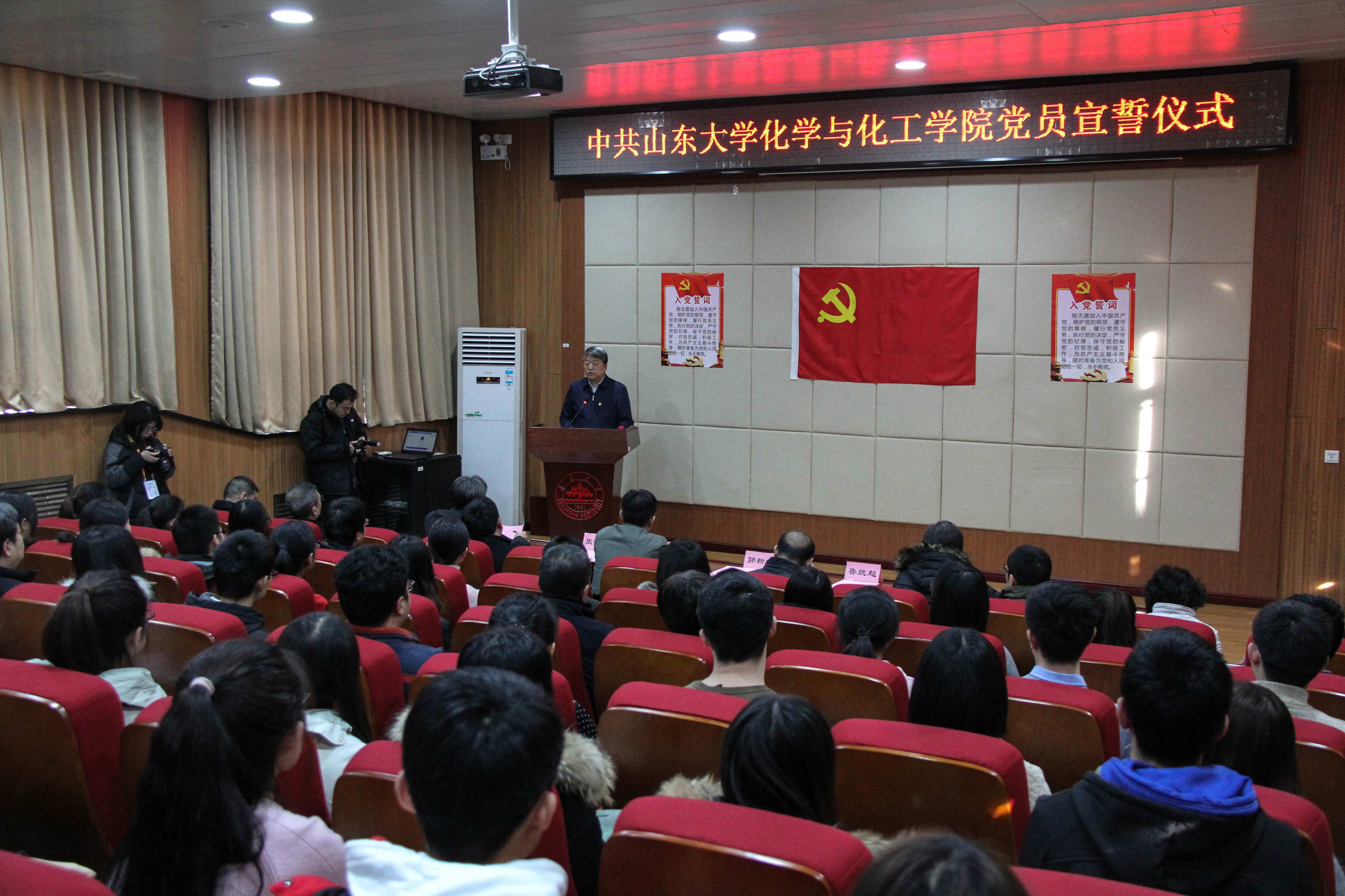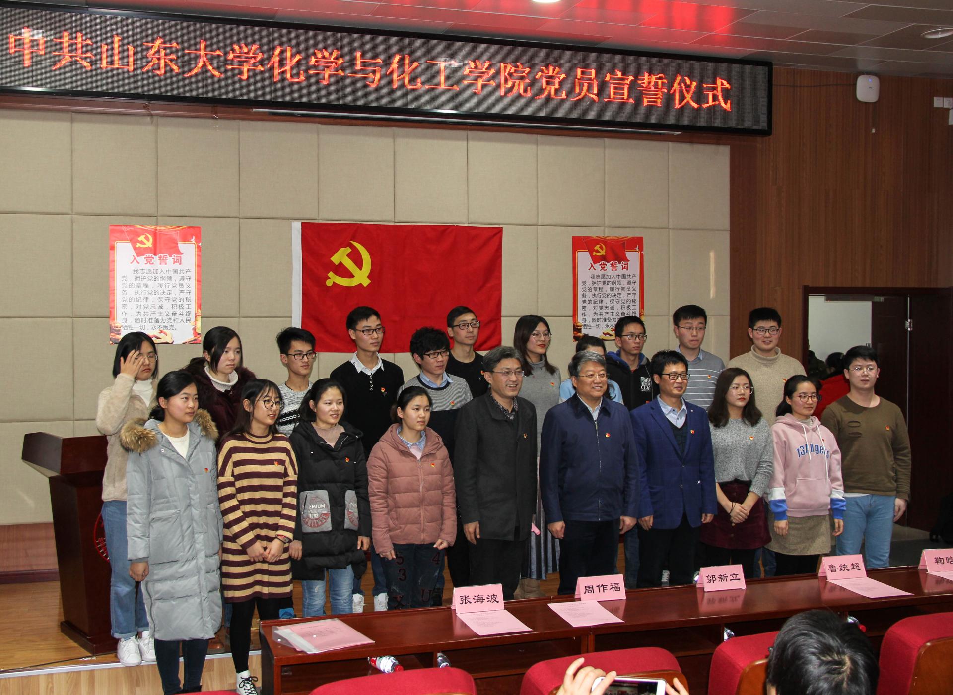 仪式上,郭新立代表学校党委向新加入党组织的19名同志表示祝贺。他对大家提了三点希望。第一,要自觉加强学习,增强党性修养。对新党员来说,真正做到从思想入党,就要靠不断学习,要深入学习习近平新时代中国特色社会主义思想和党的十九大精神,加强党章党规党纪学习,加强革命传统学习。第二,要铭记党员身份,强化党员意识。关于党员身份,有三个层面的理解,党员的思想身份、政治身份、组织身份。要不断强化理想信念意识、强化政治意识、强化组织意识。第三,要投身改革发展,充分发挥党员先锋模范作用。大家要深刻认识到,党员不仅仅是荣誉和称号,更多的是责任和担当。在学校“双一流”建设的新征程中,需要每一名党员能够在学习工作生活中,做到平常时候看得出来、关键时刻站得出来、危急关头豁得出来,要做爱国奉献、建功立业的表率,做教书育人、科研创新的表率,做勤奋学习、立德成才的表率。郭新立表示,今天的入党宣誓仪式后,大家就开始拥有了自己专属的“政治生日”。“政治生日”不仅是一个日期,更重要的是这意味着党员对于自己终生信仰的抉择。希望大家永远牢记入党誓词,经常加以对照,不忘初心、牢记使命,以追求卓越、只争朝夕的信念和决心,努力为实现青春梦、山大梦和中国梦而不懈奋斗。