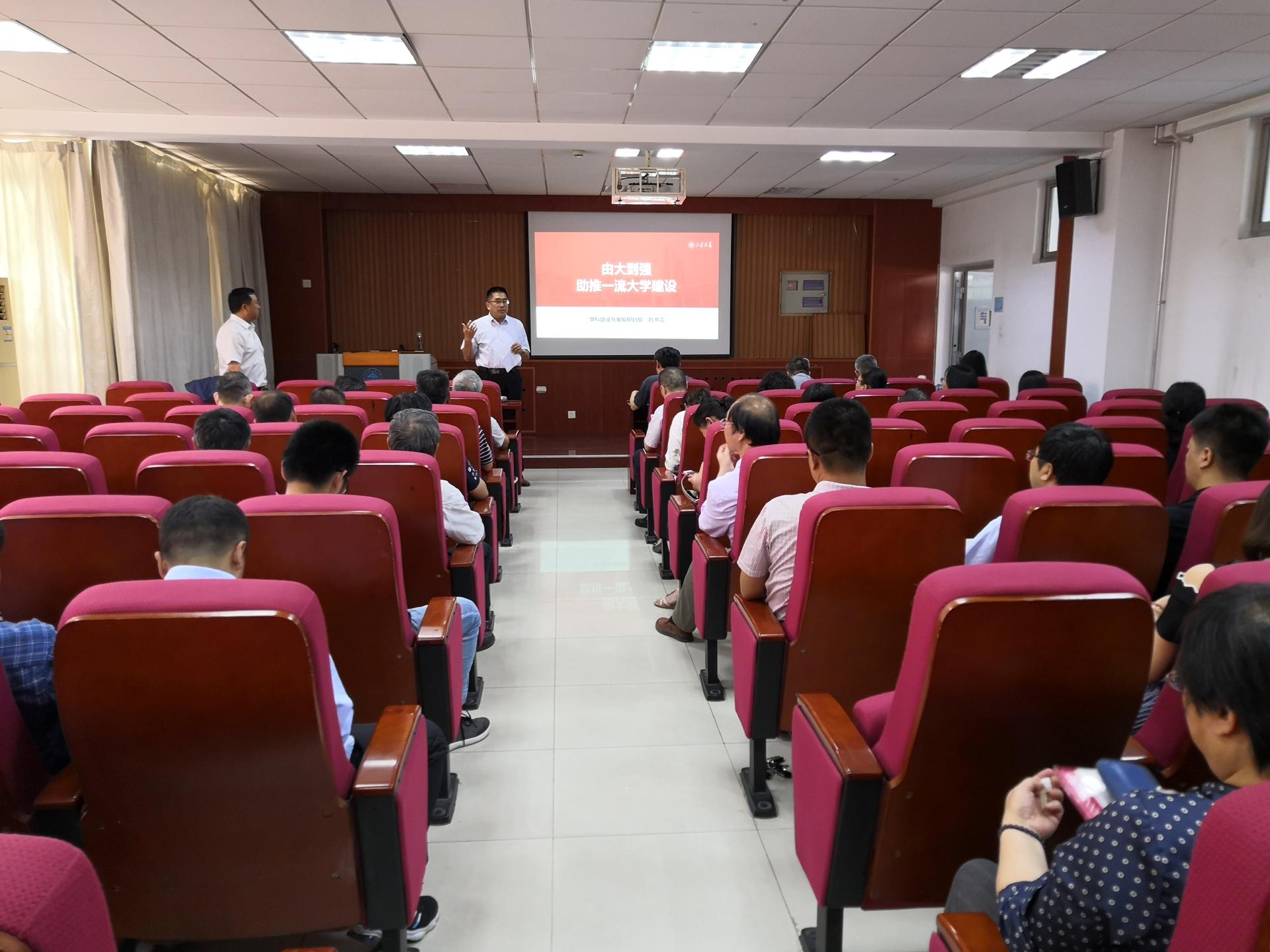 刘洪渭部长系统回顾了学校的办学历史和学科现状,详细介绍了学校第十四次党代会后推动学科建设的重点工作和推进世界一流大学建设项目体系建设的有关举措,并深入分析了目前学科建设存在的突出问题,提出了下一步工作思路和工作重点。他指出,学科建设是龙头,在推动学校加快实现“由大到强”的历史性转变中具有重要作用,要“聚力做强学科、做强学院两大重点,推动学术核心竞争力提升”。同时,刘部长还基于论文数据的分析对化学学科的建设提出了宝贵的意见,他建议学院进一步加大科研组织力度,积极追踪全球研究热点和交叉方向;改变论文发表导向,由“重量”转变为“重质”,不过分强调论文数量的增加,减少低水平论文的发表;加强人才队伍建设,精准引进与培育高被引或具有发展潜力的人才。专题辅导结束后,与会人员就提升化学学科核心竞争力、打破行政壁垒整合学科资源、提高研究生论文发表质量、加强化学化工两个学科互促发展等问题深入交流了观点、看法。