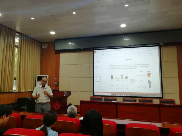 Ravi Shankar教授以可持续发展的科学理念为铺垫,通过讲解有机硅材料的最新进展,让大家重新发现和认识有硅化学的魅力。首先,Ravi教授做了题为“Sustainable development – Global challenges and remediation”的报告,介绍了可持续发展研究所面对的挑战,通过列举实例详细地阐述可持续发展的研究目标以及通过科学的手段来修复面临的环境及社会问题,告诫研究者应提高对可持续发展研究的重视;然后,通过题为“ Silicon chemistry – An overview and rediscovering silicones ”及“Noble metal nanoparticles in catalysis”的报告,他重点讲解功能性单体、无机聚合物及将其应用于先进材料领域的研究,通过选取实例分析说明选取适合的催化剂如:贵金属纳米颗粒(Noble metal nanoparticles)、同相/异相金属碱(Metal based catalysts (homogeneous and heterogeneous))、路易斯酸催化剂(Lewis acid catalysts)等,可以达到高选择性合成目标产物的目的;接下来,Ravi教授以口述加手书的形式讲解了有关自愈合材料(Self-healing materials)的化学键组成及种类,通过精讲文献的方式深化自愈合材料的理论学习。最后,他以讲解配位化学基础知识入手引出当前MOFs材料当前面临的挑战,分析如何提高MOF材料稳定性的相关研究为尾声结束了这5天的精彩讲说。在这4天的学习交流中,Ravi教授不断告诫年轻一代科研人员要学会从全局观念入手用心做研究,正确理解科学本身不仅是解决问题,更是确定问题的存在这一观点;同时,Ravi教授强调在平时的学习生活中,要勤思考、敢提问、多交流,培养自己独立解决问题的能力,开拓科研及合作思路。