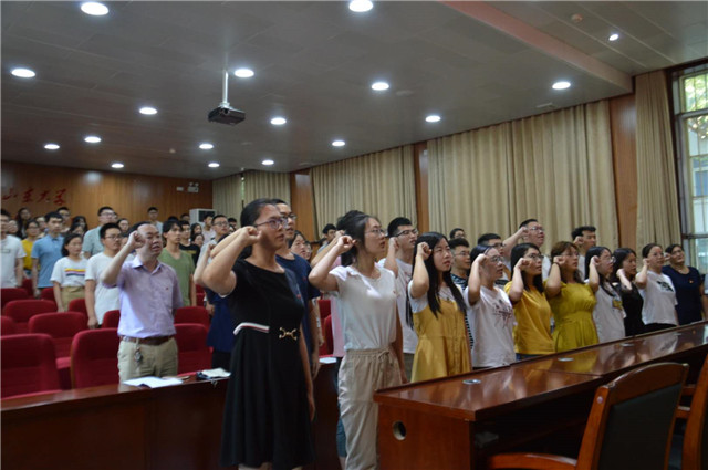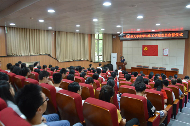 2019年7月5日下午,9778818威尼斯党员宣誓仪式于化学老楼学术报告厅举行,学院新入党的预备党员、老党员代表和入党积极分子80多人参加仪式。仪式由学院组织员彭彤主持。