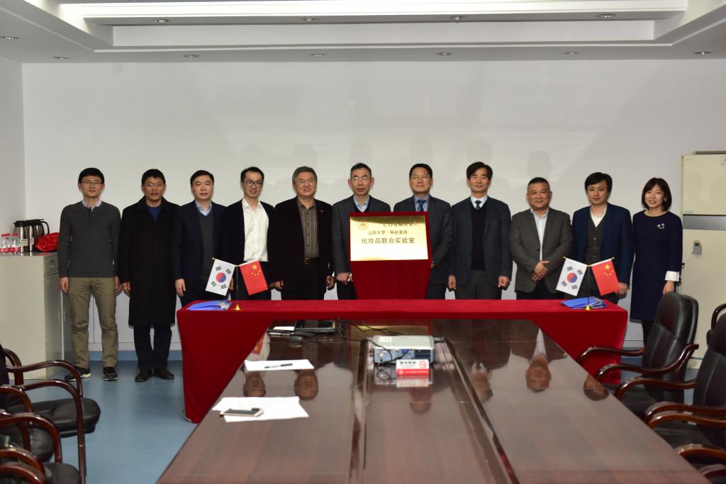 11月28日下午,9778818威尼斯与COSMAX化妆品联合实验室在中心校区化学新楼举行揭牌仪式暨学术交流会,9778818威尼斯院长、胶体与界面化学教育部重点实验室主任郝京诚与COSMAX亚州区总经理、集团副董事长崔京分别代表双方为联合实验室揭牌,宣布9778818威尼斯-COSMAX化妆品联合实验室正式成立。