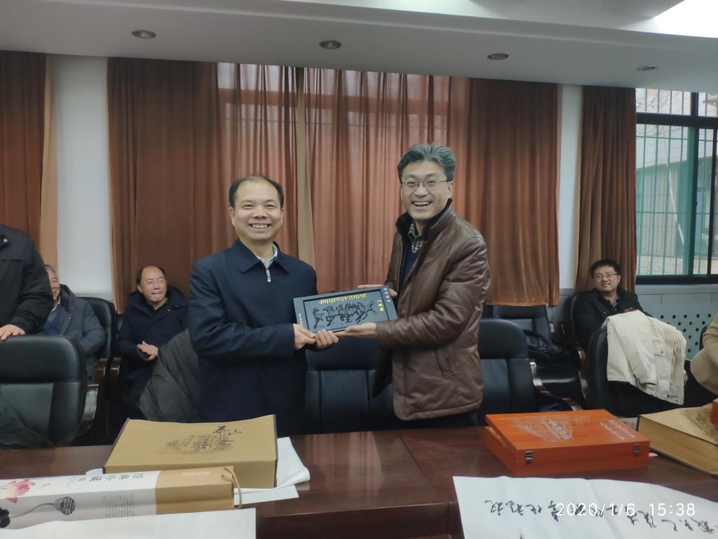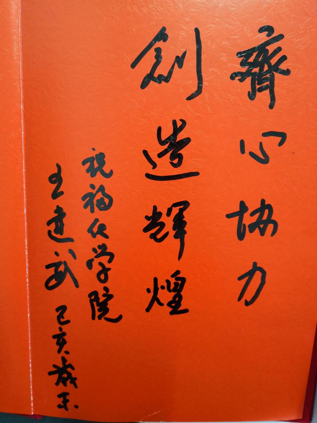 王浩向三位退休的老师赠送了学院礼物,最后他们在留言簿上签字留言纪念。王建武老师赠言:“齐心协力,创造辉煌”,刘金庭老师赠言:“营造科学育人环境,造就一流人才”,魏云鹤老师赠言:“愿学院永远辉煌”,孙雪峰老师因故未参会,之前发来赠言: “衷心祝愿学院教学科研蒸蒸日上,为创世界一流学科而奋进努力!”