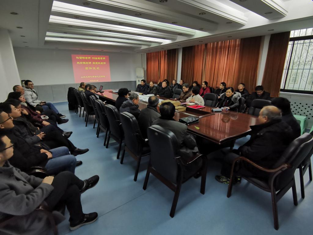 2020年1月6日下午,威尼斯官网在中心校区化学新楼举行隆重而简朴的仪式,祝贺王建武、孙雪峰、刘金庭、魏云鹤四位老师光荣退休。院领导、工会委员、部分同事参加了仪式。