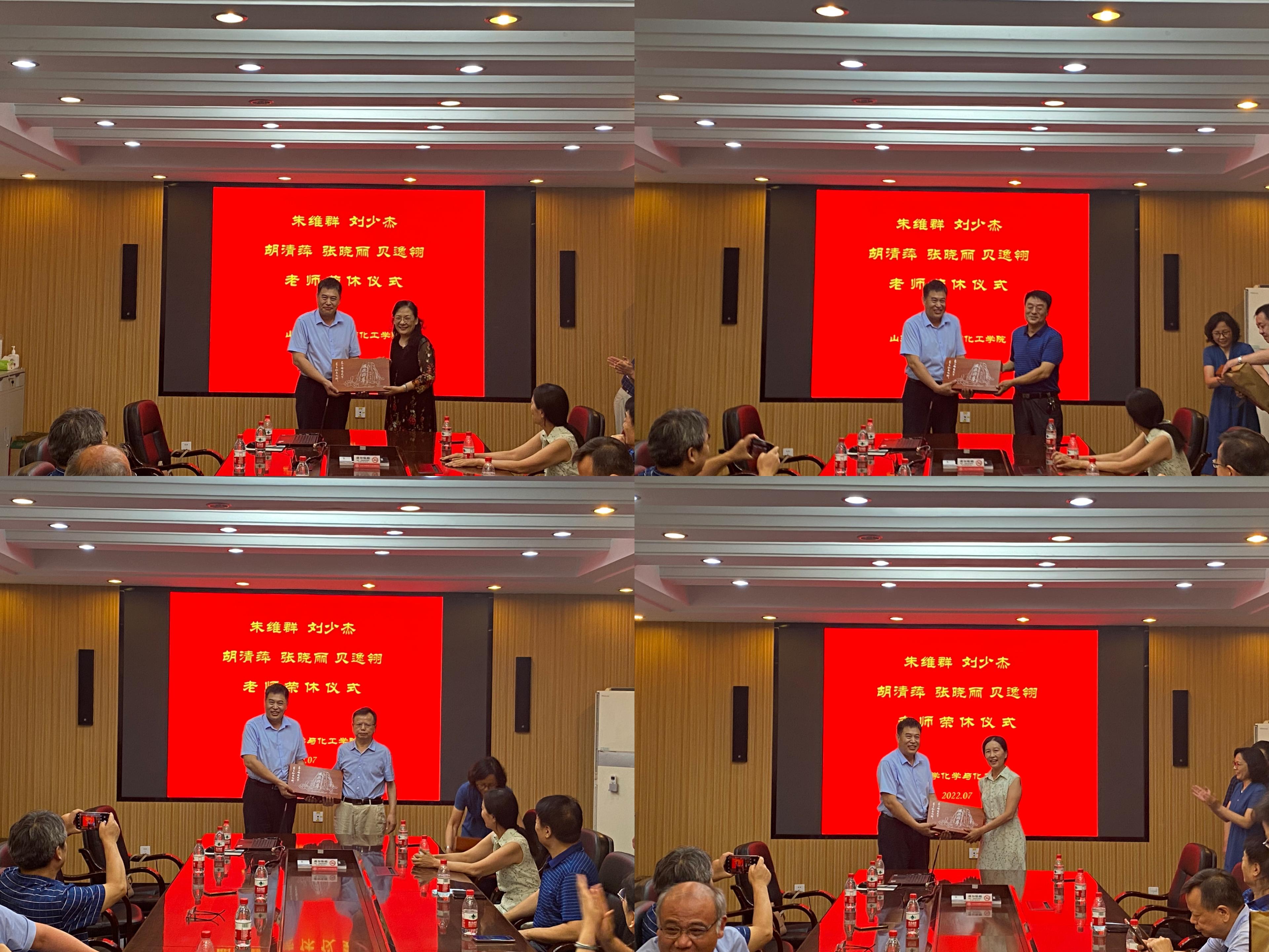 学院班子成员,退休教师所在党支部书记、工会委员及教师代表出席仪式。