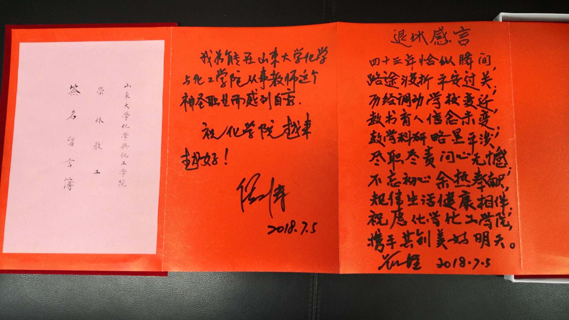 最后,院长郝京诚为两位老师赠送了学院礼物,两位老师在留言簿上签字留言。